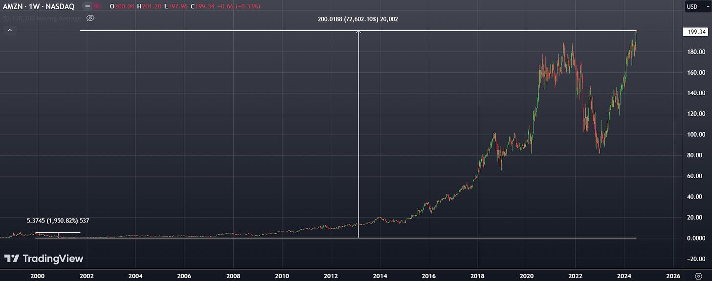 And a staggering 73,000% over time! Which is fantastic if you didn’t get wiped out in the first crash, and tragic if you did.